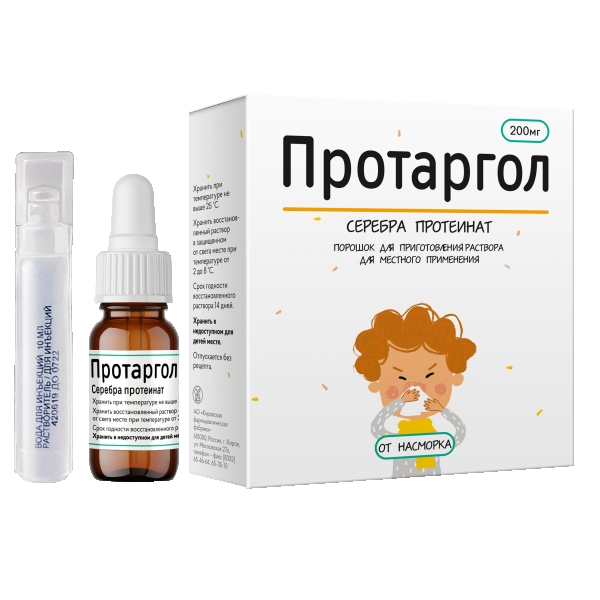 Фармацевтическое взаимодействие: соли цинка, меди, свинца, серебра, ртути, железа, алюминия образуют с раствором серебра протеината нерастворимые осадки; раствор серебра протеината инактивируется солями алкалоидов и органическими основаниями (эпинефрин).